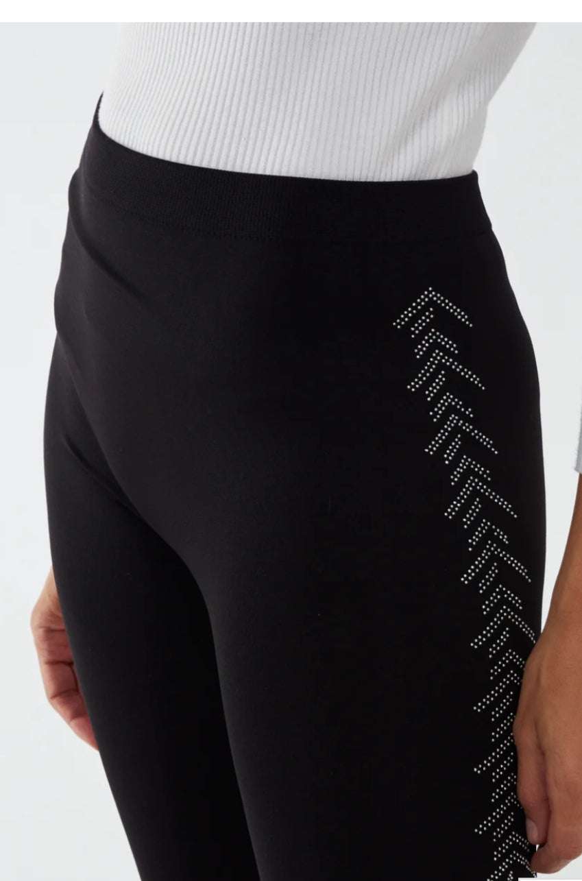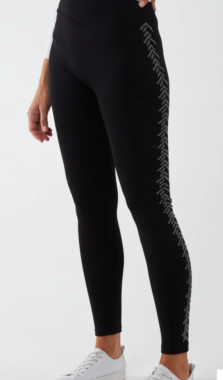 Fleece Lined Leggings With Chevron Diamante Side Pattern
