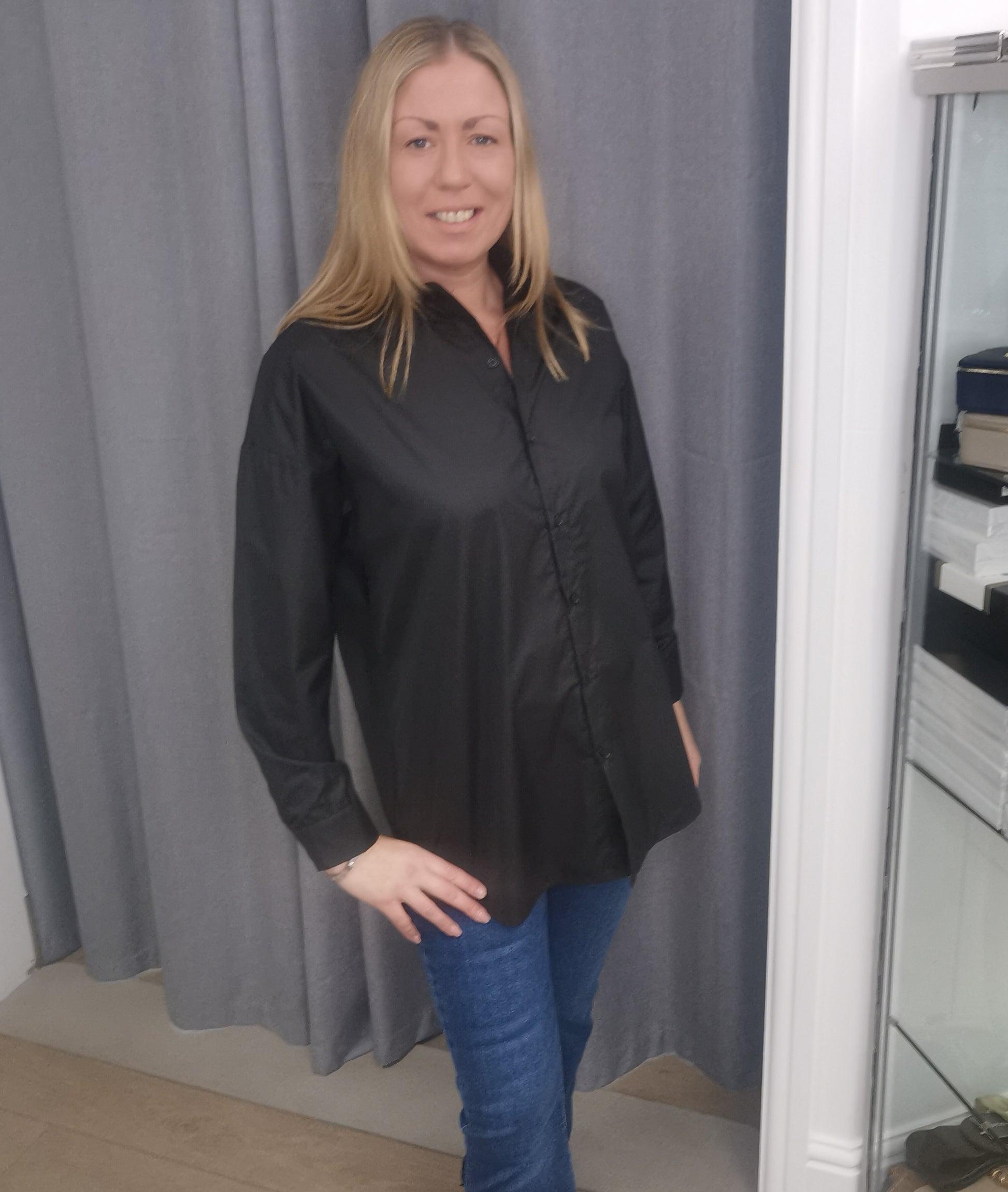 Soft high low cotton shirt, satin finish with poly elastane