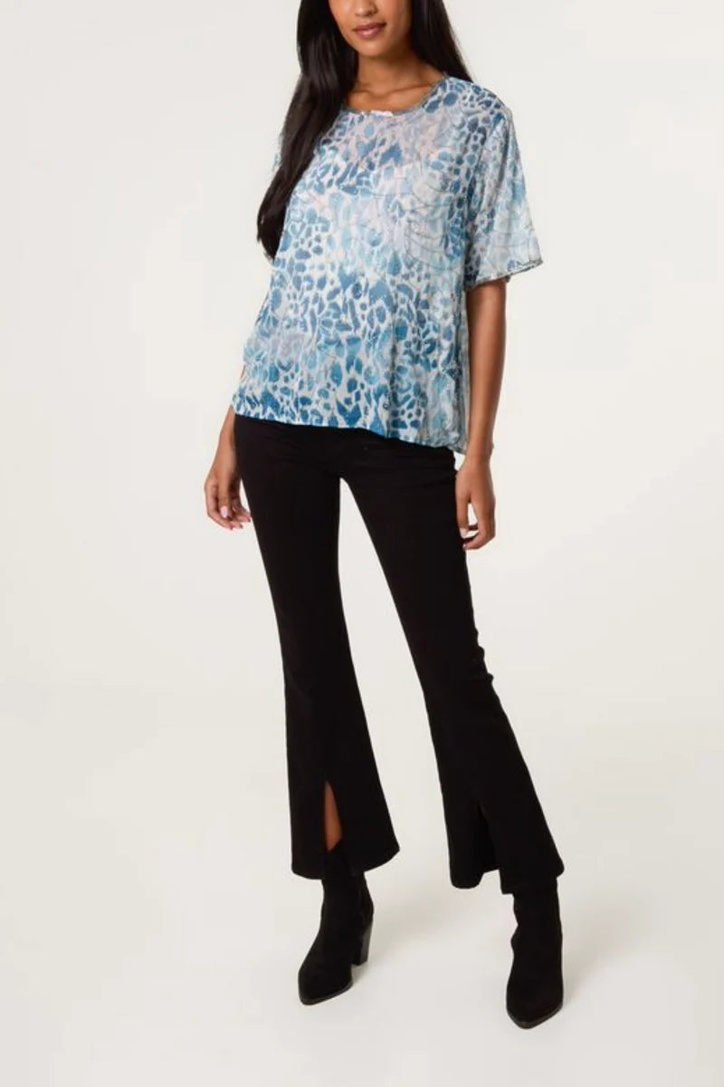 Embellished animal print chiffon top