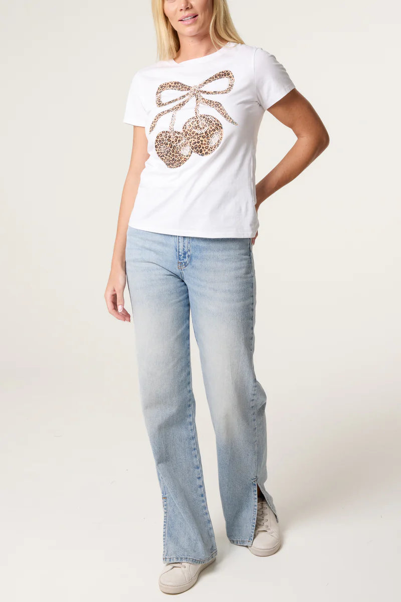 Embellished animal print cherry t-shirt