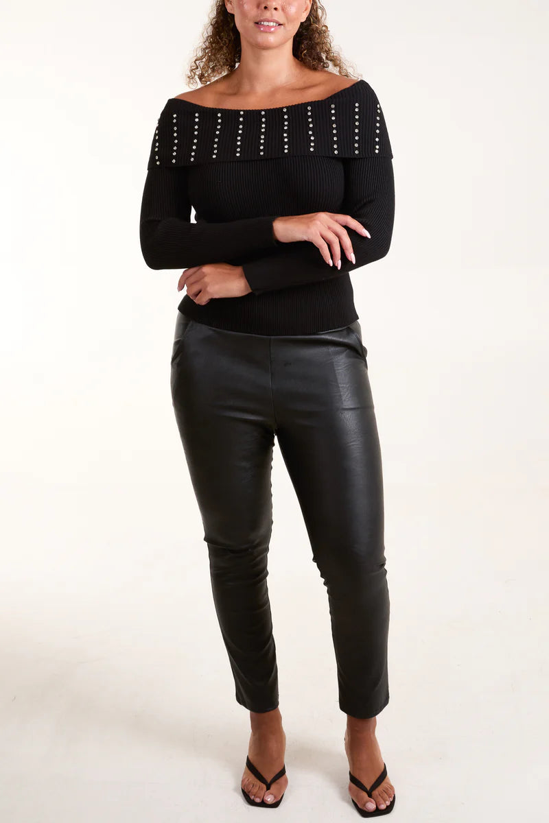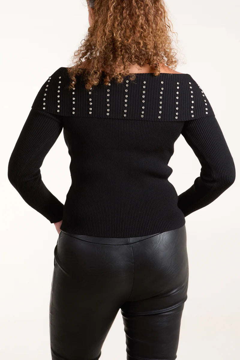 Bardot Ribbed Jumper With Diamante Detail
