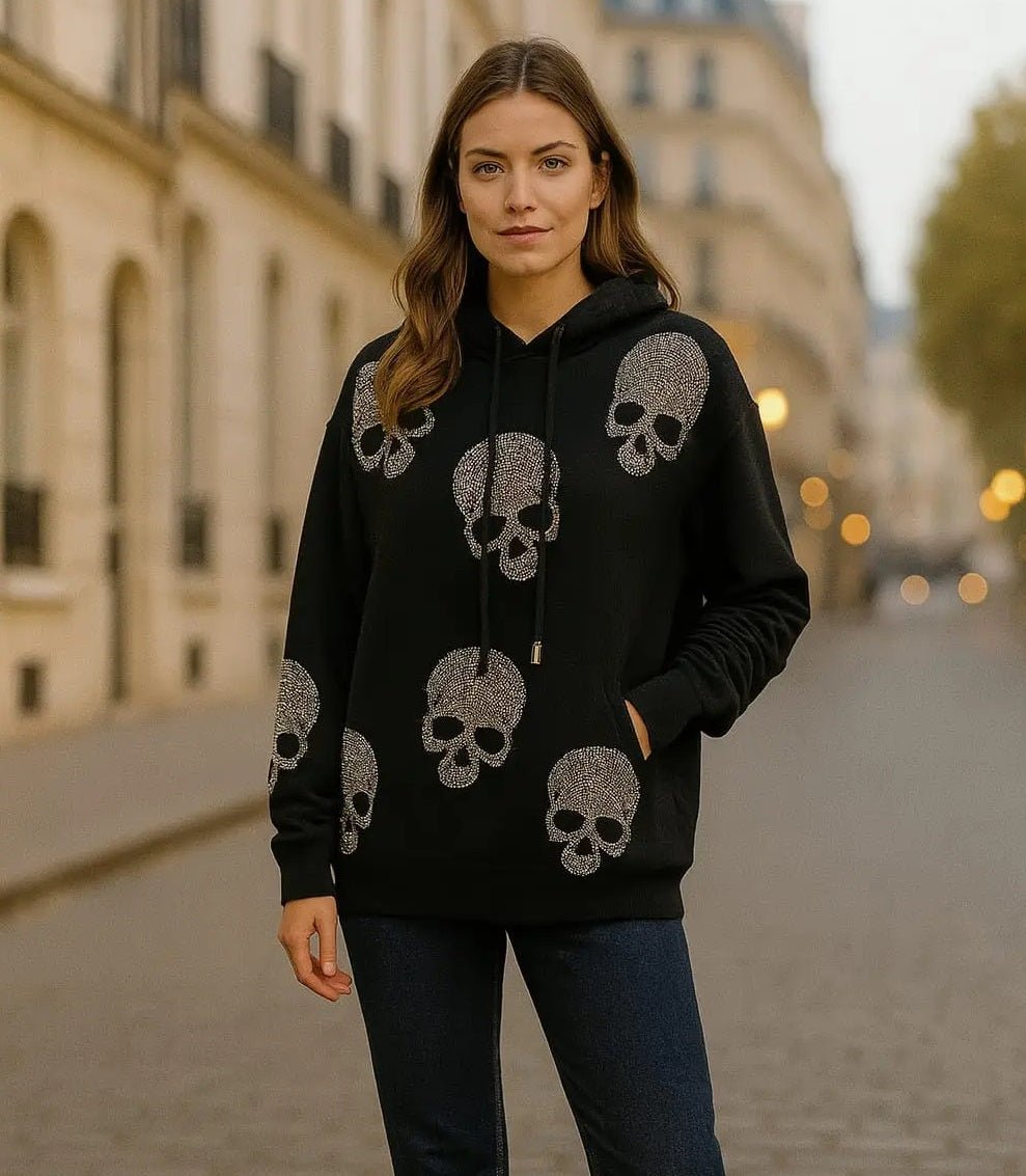 A soft knitted Cotton wool skull blend hoodie.