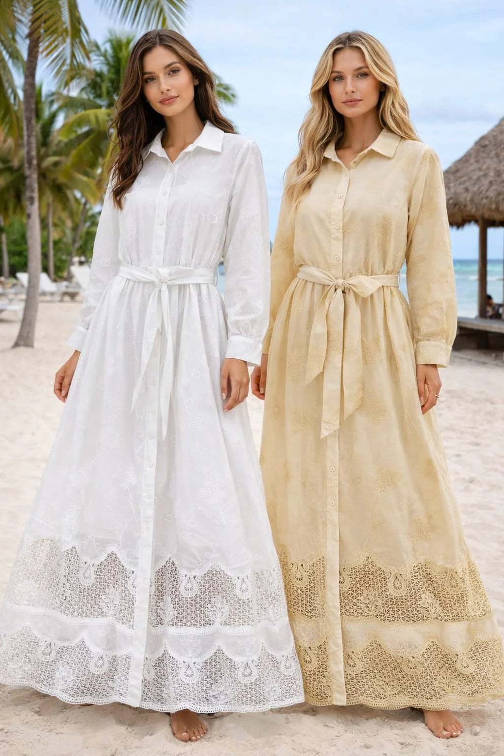 Fully lined broderie anglaise collared maxi dress.