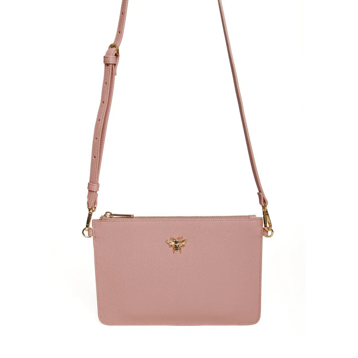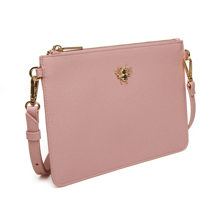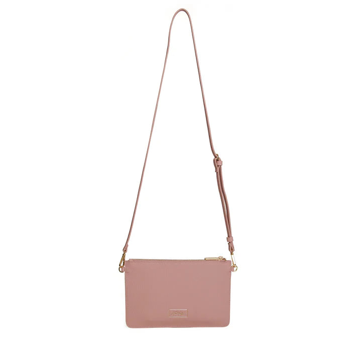 This clutch is a super slim cross body pouch designed for hands free convenience.