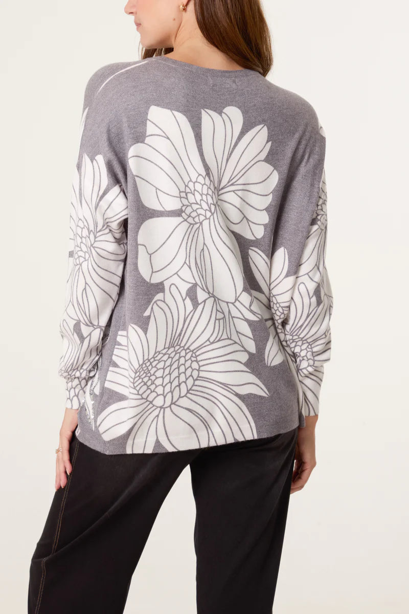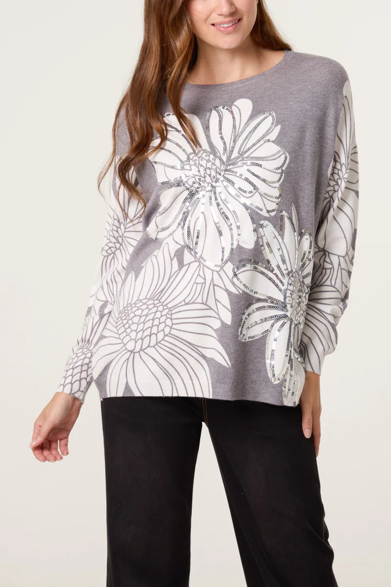 Super Soft Fine Knit With Floral Embellished Detail