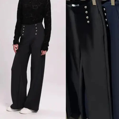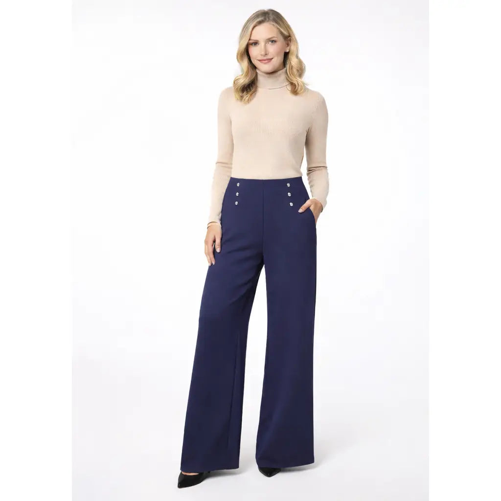 Wide Leg Bi Stretch High Waist Trousers,
