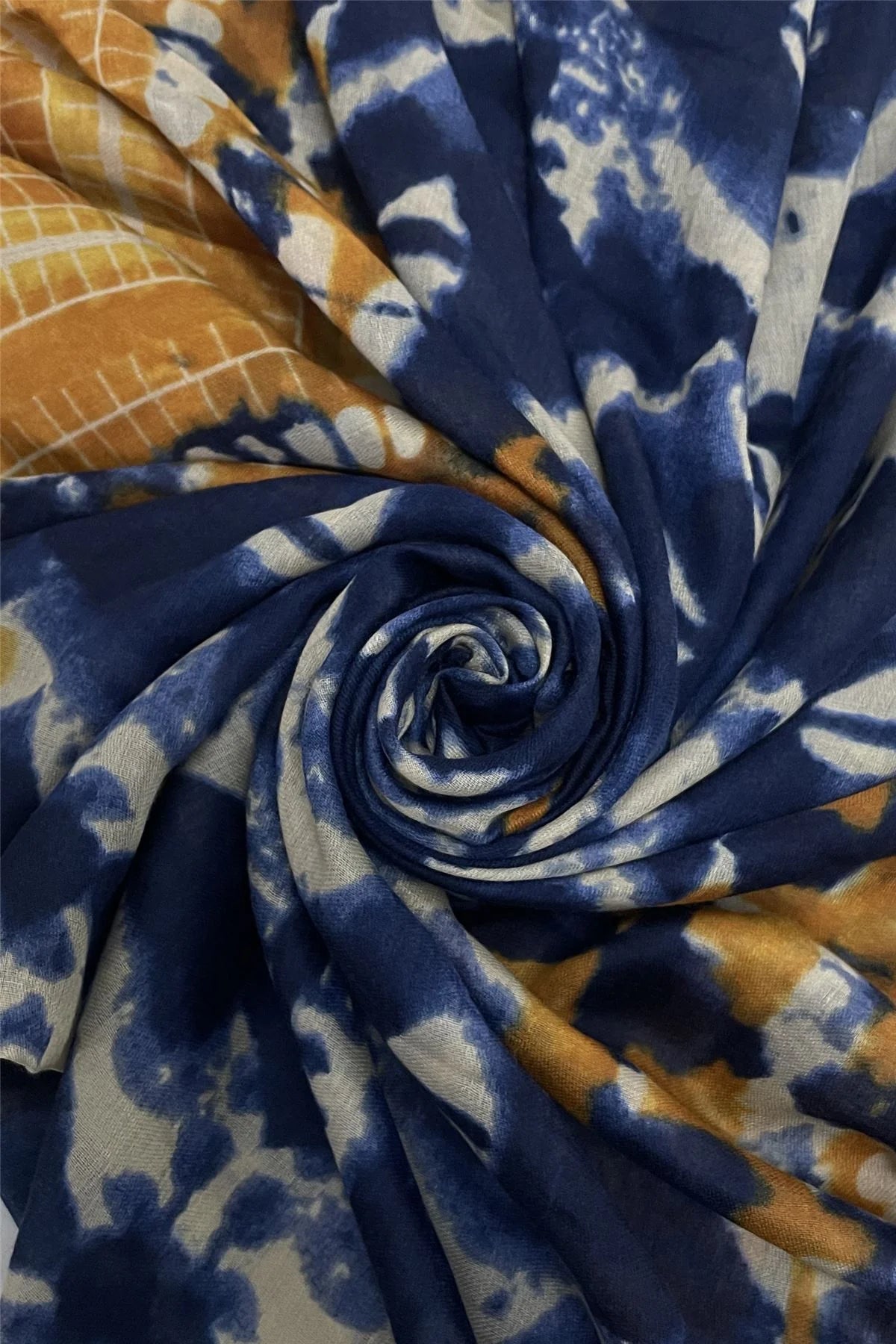 Mirror Ink Blot Print Scarf with Frayed Edge