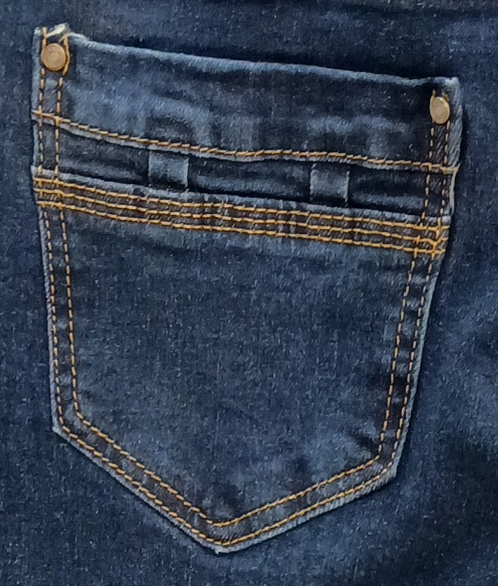 - Features 2 side pockets, 2 back pockets with embroidery detail